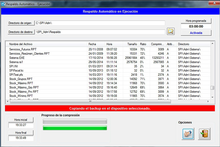 Módulo para realizar un backup completo. Puede programarse la hora automática.