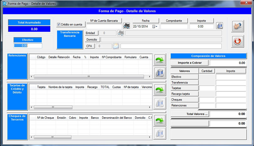Recibos de cobro. Módulo para especificar la forma de pago de los clientes.