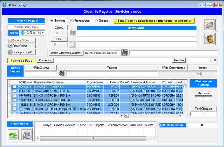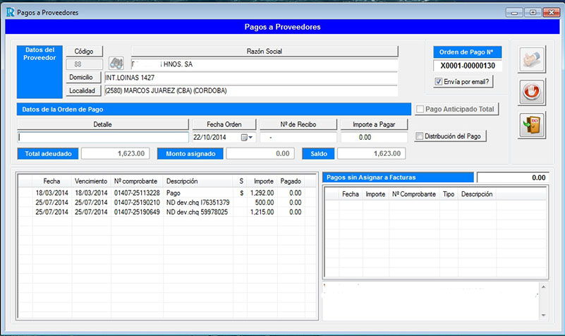 Proveedores. Órdenes de pago.