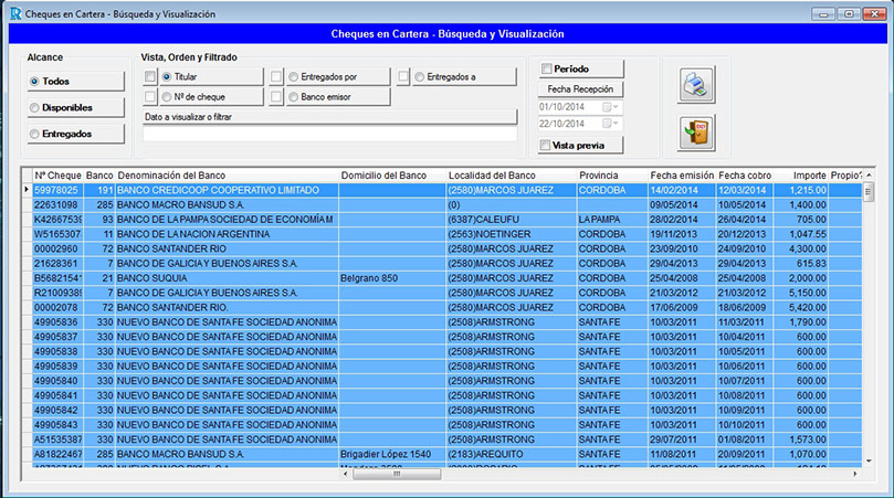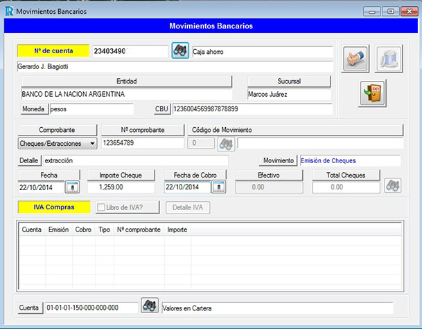 Generación de movimientos bancarios (cheques, depósitos, extracciones, débitos, créditos).