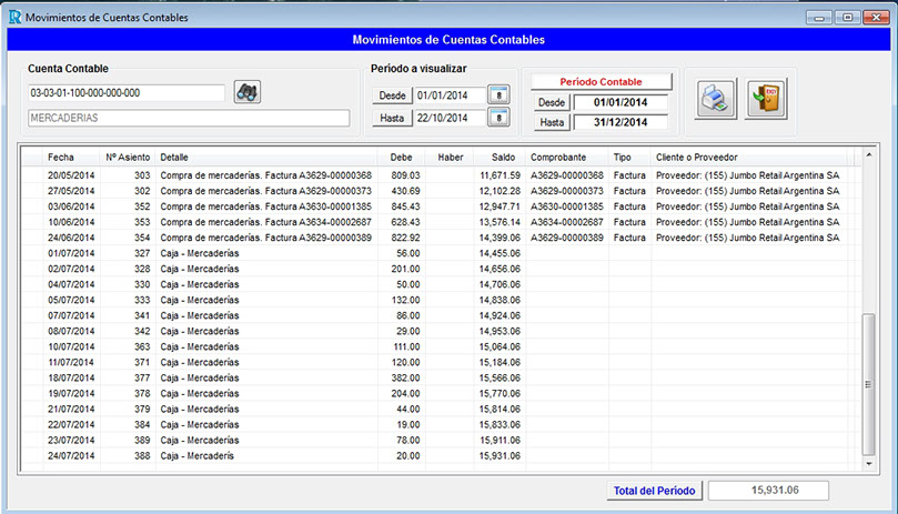 Contabilidad. Movimientos de cuentas contables.