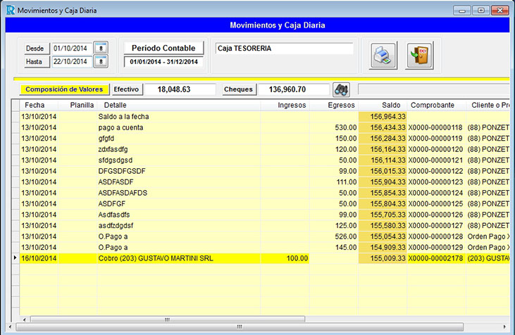 Planilla de movimientos de caja.
