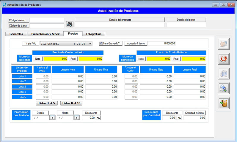 Actualización de los productos de venta al público.