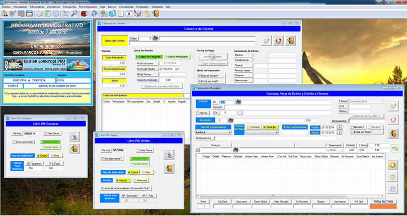 Pantalla principal. Manejo de múltiples ventanas para agilizar las tareas.